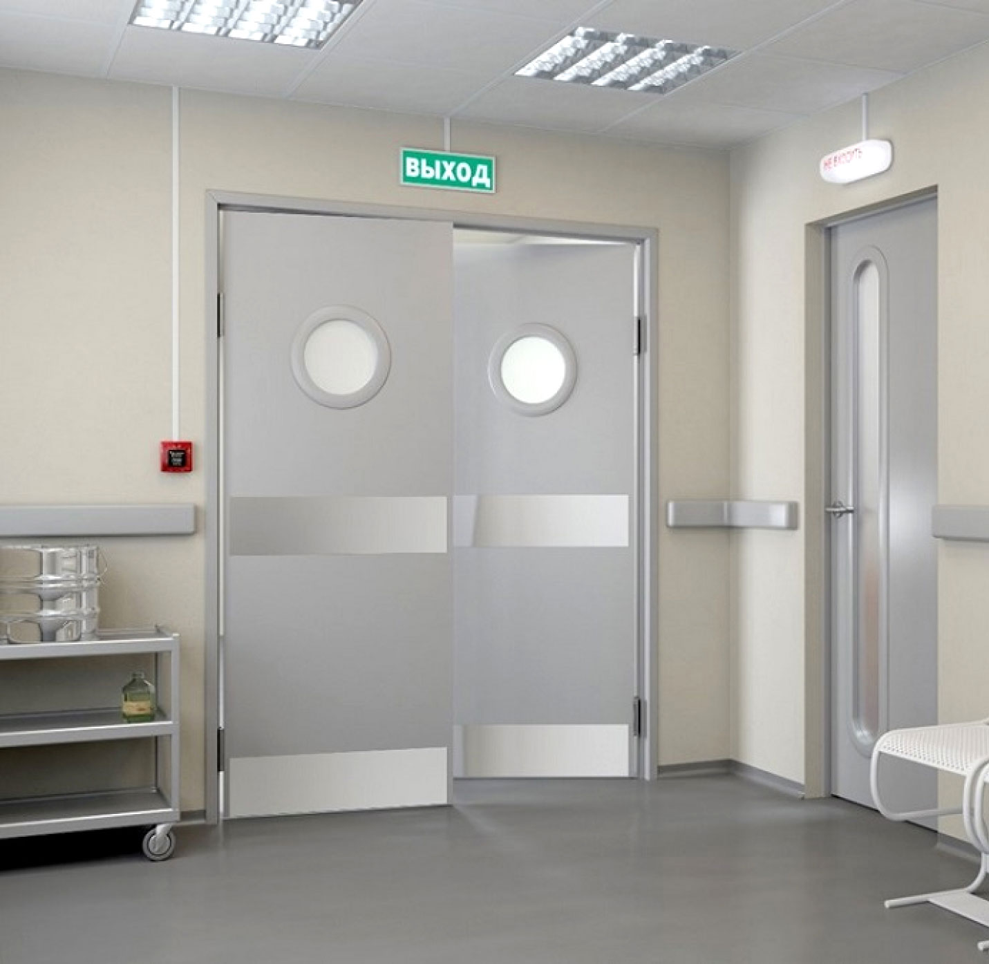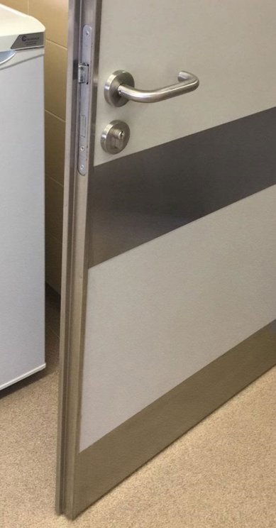 These doors are intended for installation in polyclinics, hospitals, and medical institutions that have special requirements for surface treatment with disinfectants and detergents.