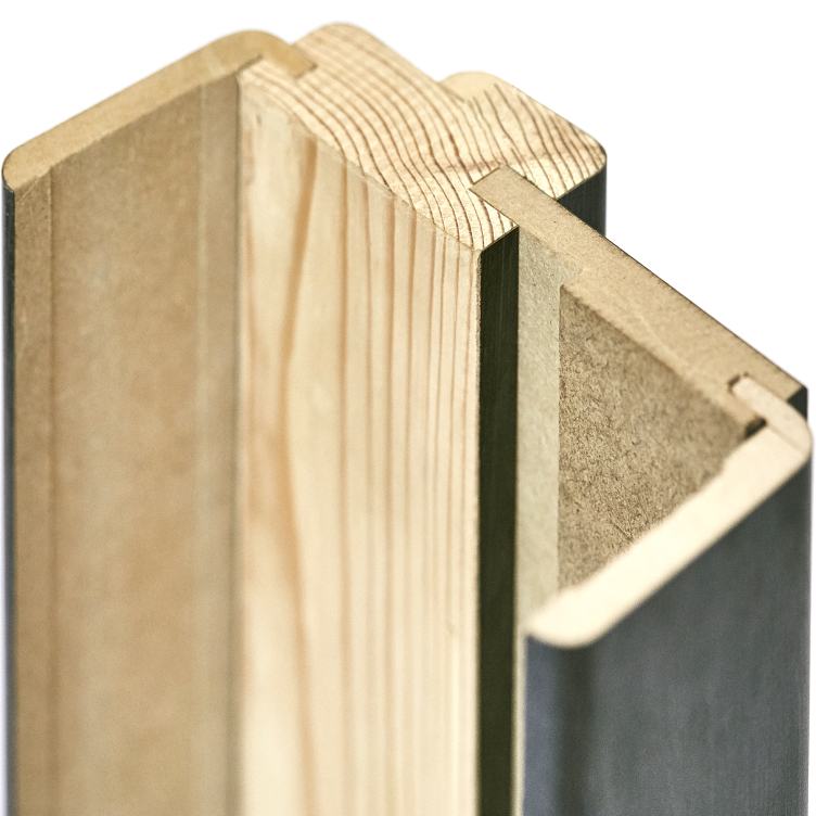 The frame is made of solid pine, lined on both sides with 6 mm thick MDF boards.